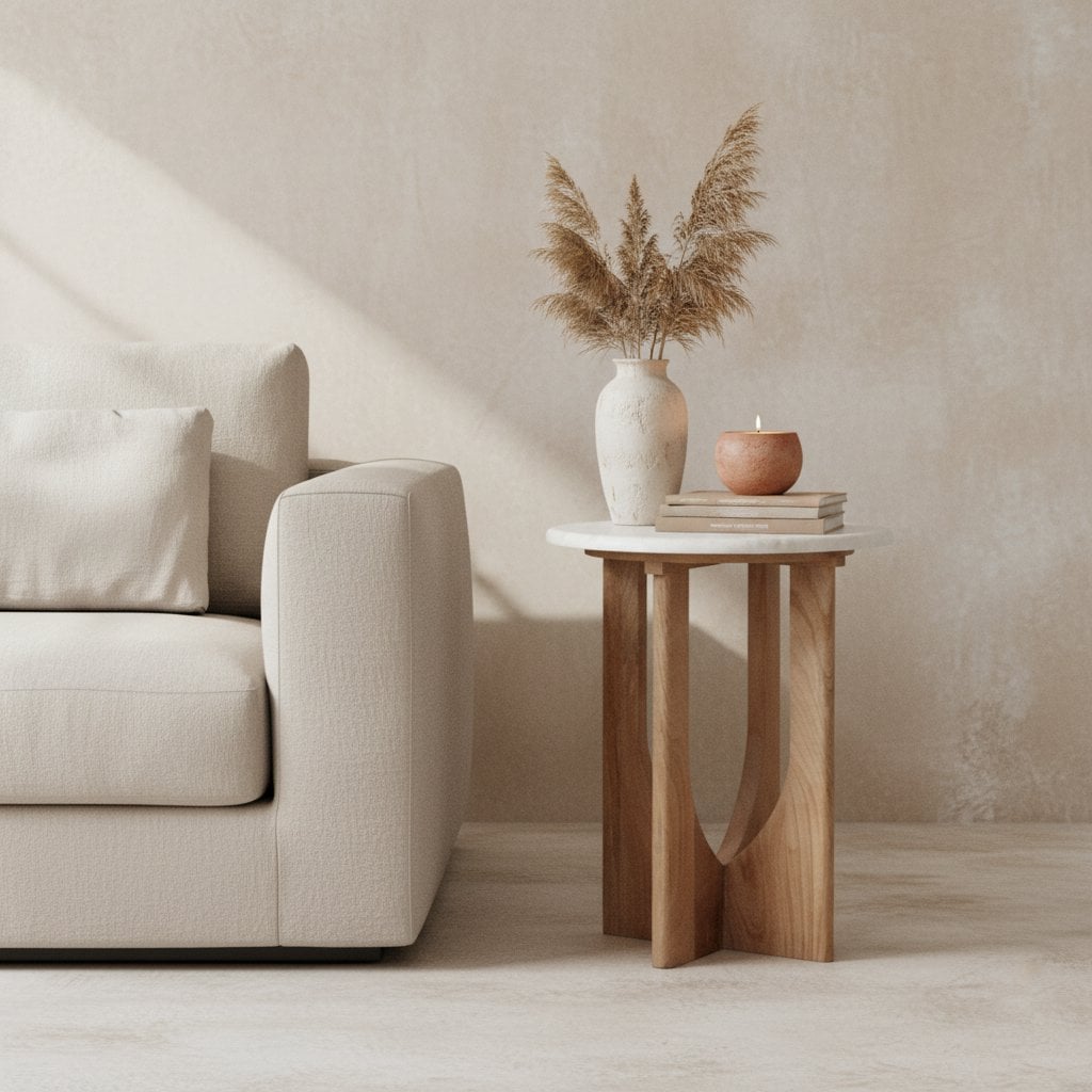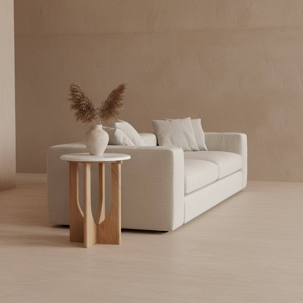 De Kuching bijzettafel marmer wit brengt licht en rust in huis. Met zijn frisse witte marmeren blad en het warme, naturel mangohouten onderstel vormt deze tafel een kalm middelpunt in de ruimte. Het ontwerp is eenvoudig, maar geeft een gevoel van harmonie en aandacht voor detail — precies wat past binnen een modern, Japandi of Scandinavisch interieur.