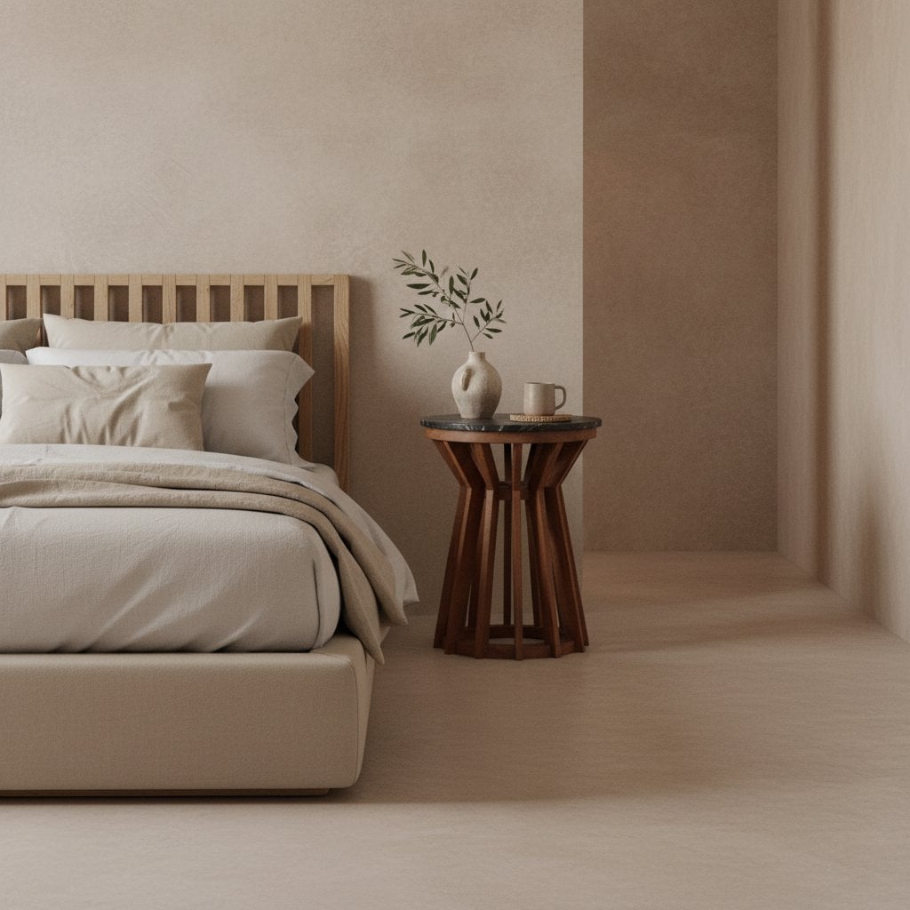 De Sabah marmeren bijzettafel voelt zich overal thuis: naast de bank met een kop koffie, in een leeshoek met een plantenpot erop, of als nachtkastje bij het bed. Overal voegt hij een subtiel accent toe en een rustige, natuurlijke sfeer aan de ruimte.