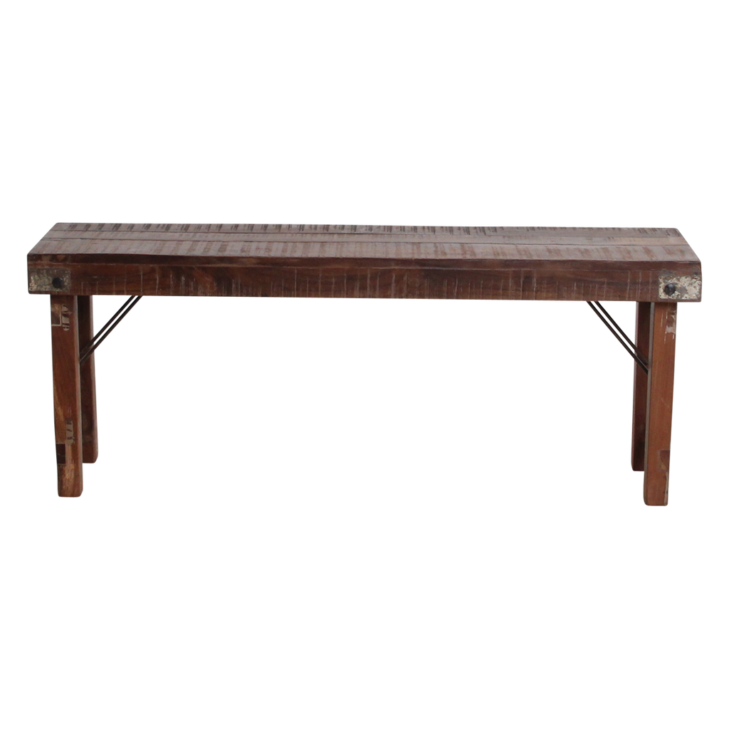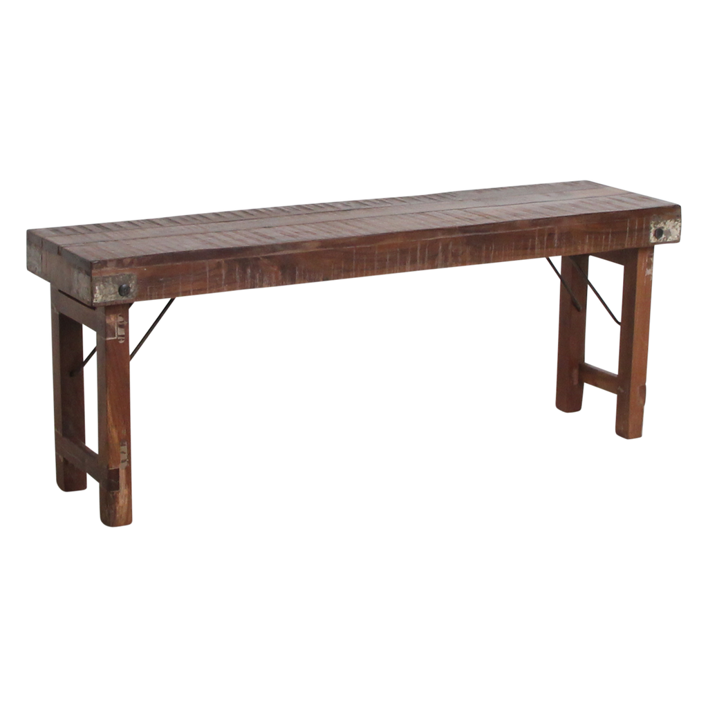 Deze (eetkamer-) bank is gemaakt van hout. De bank is inklapbaar en komt oorspronkelijk uit India. Doordat de poten zijn in te klappen is hij erg makkelijk op te bergen. Ook verkrijgbaar in een 160 cm versie Doordat het gaat om unieke banken kan het zijn dat de tint van het hout, de bewerking of de afmeting iets verschilt met de bank op de afbeelding. Houd hier rekening mee bij bestellen. Mocht u twijfelen dan kunt u ons altijd mailen.